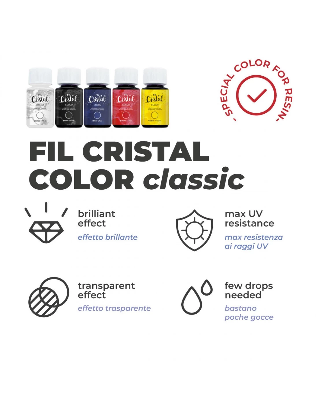 Colore trasparente brillante e luminoso ideale per la resina Fil Cristal. Arricchito con un filtro speciale UV che ne migliora la resistenza alla luce.