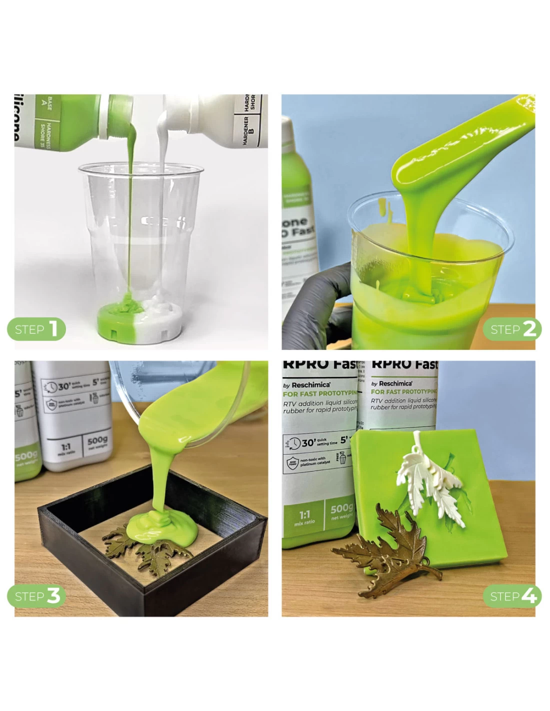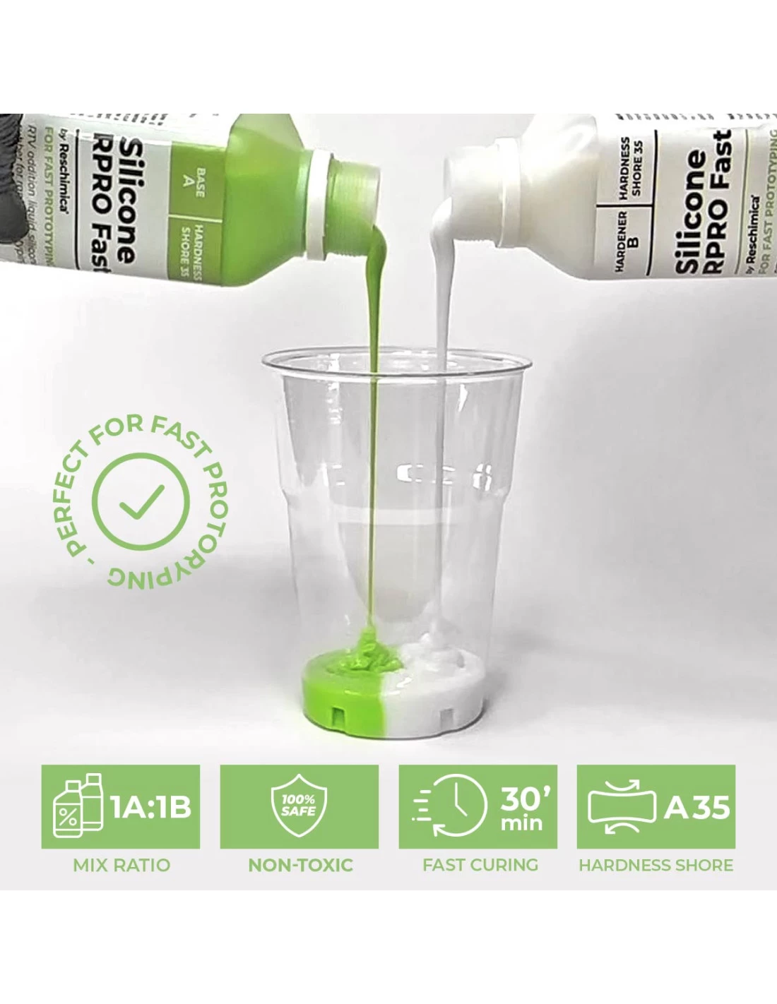 PRO FAST è una gomma per prototipazione rapida bicomponente per addizione, ovvero che ha bisogno che due componenti, una base e un catalizzatore, si miscelino, affinché catalizzi. Questa gomma è inodore, di colore verde acido, ad uso professionale ma utilizzabile anche da principianti, poiché è facile e sicura, dato che non contiene ingredienti pericolosi neppure nel catalizzatore al platino, che è solitamente la parte più nociva tra i due componenti.