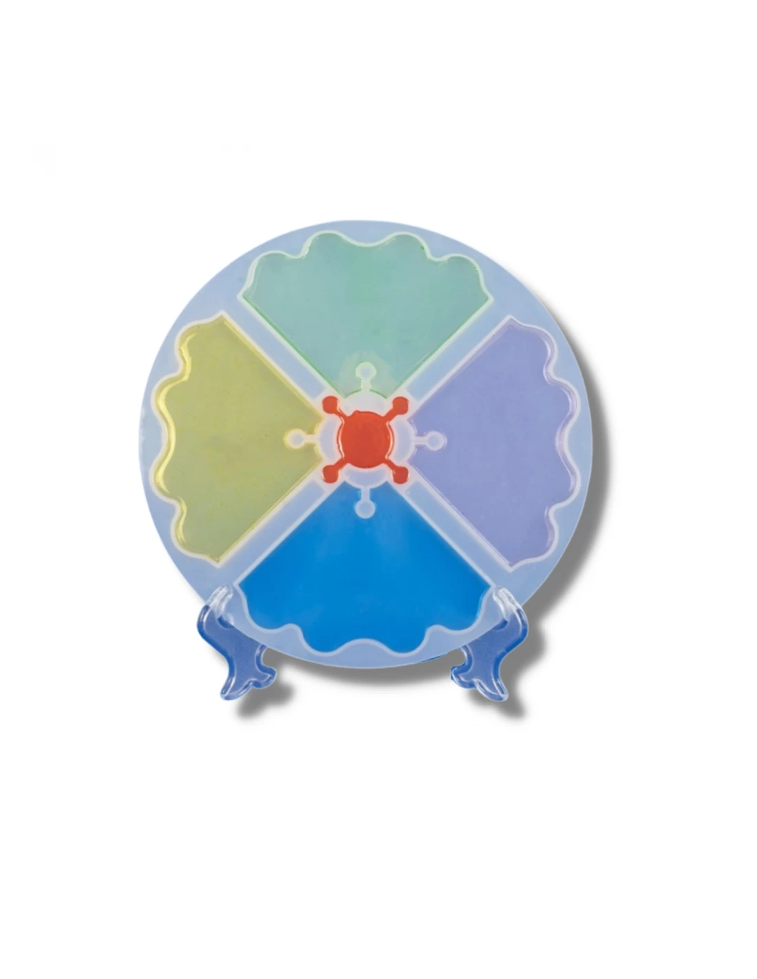Stampo in silicone traslucido multiforme – 4 forme grandi ed una centrale per unire tutte le parti.