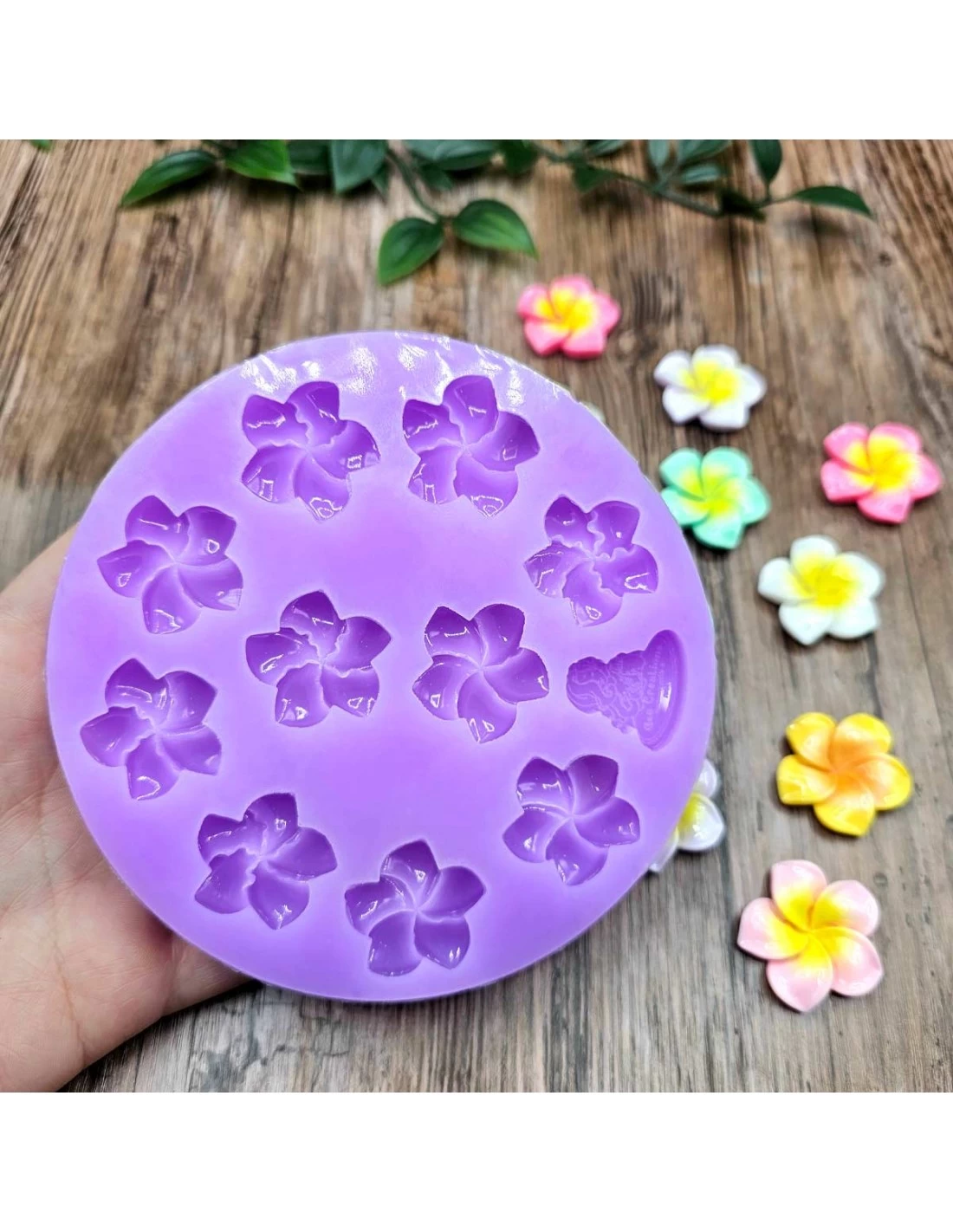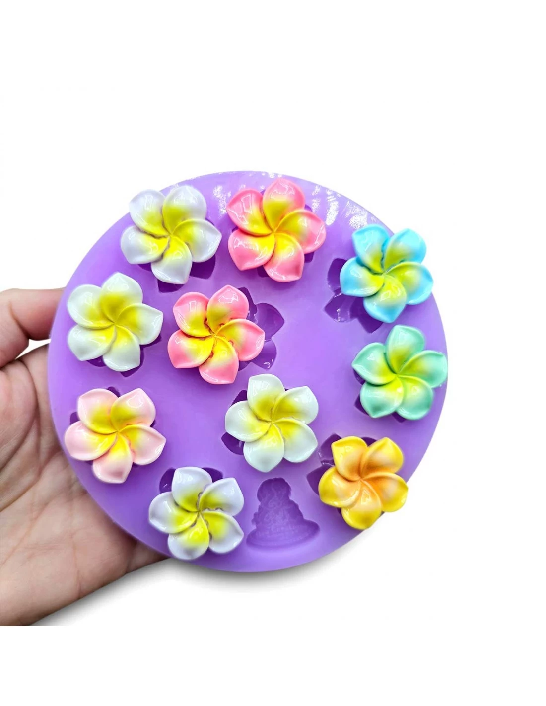 Stampo artigianale. Set di 10 fiori tipo frangipani, simili a gelsomini. Questo set offre fiori tridimensionali perfetti per creare gioielli, decorazioni o regali primaverili.